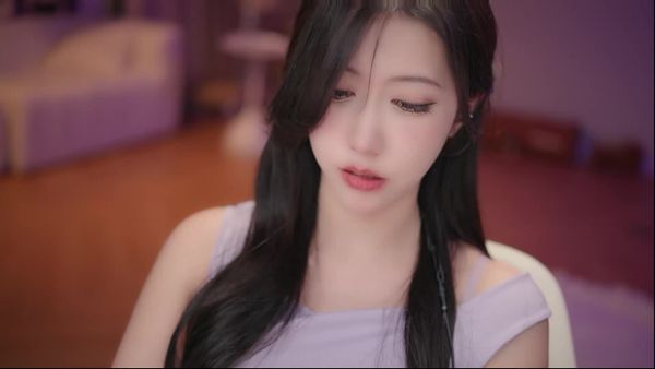 梨落ASMR 神秘视频 紫色睡衣 骑枕头 口透明棒 揉乃